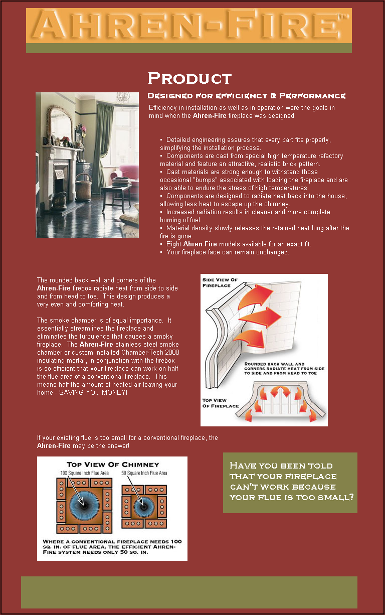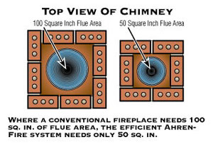 If your existing flue is too small for a conventional fireplace, the Ahren-Fire may be the answer!