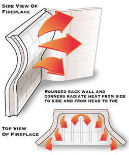 The rounded back wall and corners of the Ahren-Fire firebox radiate heat from side to side and from head to toe. This design produces a very even and comforting heat.